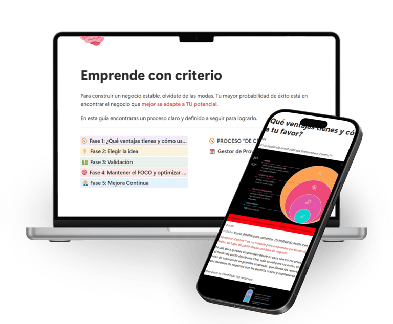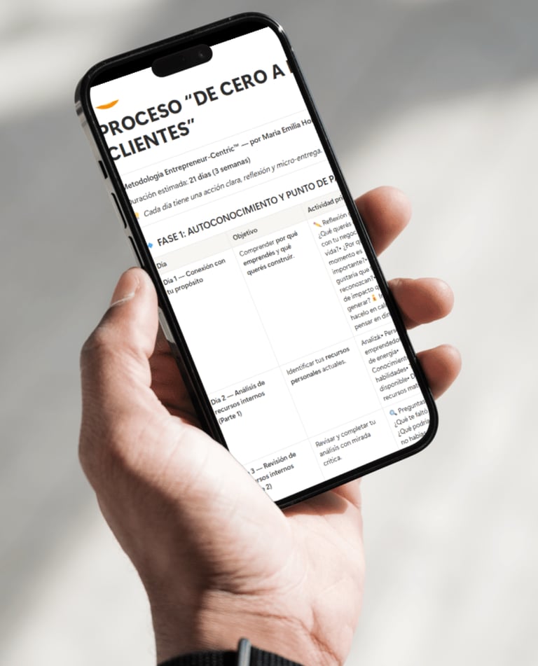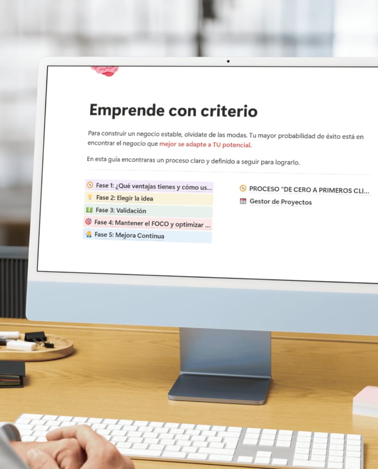 Empezá con claridad, foco y método. Descargá gratis esta plantilla-guía en Notion que te acompaña día a día a construir un negocio realista, basado en tus propios recursos y no en ideas de moda.